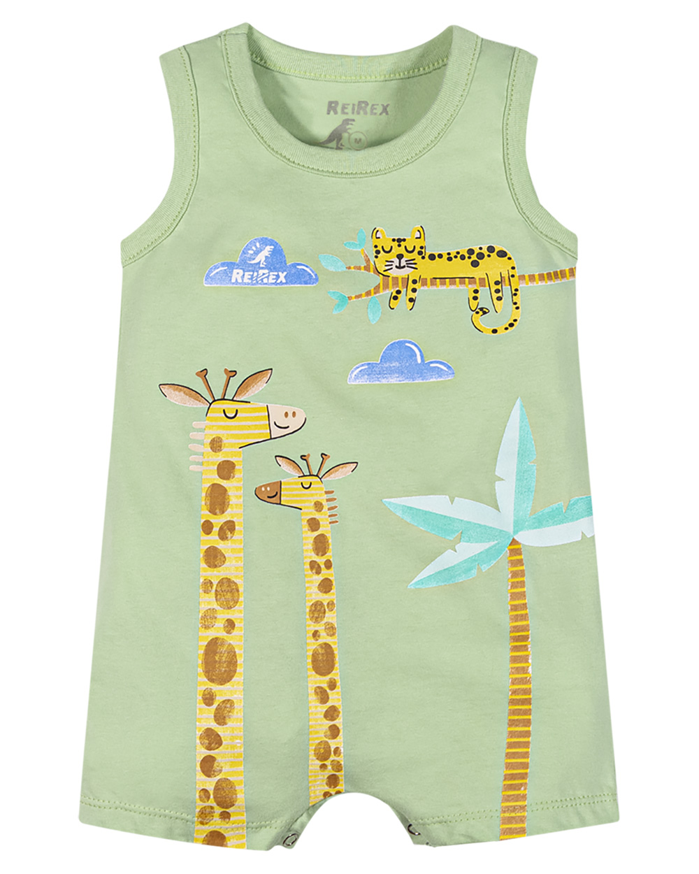 A escolha ideal para os dias de calor! Esse macaquinho da ReiRex une conforto e diversão em uma única peça. A estampa giraffa com aplicações traz um toque lúdico, enquanto o tecido macio garante liberdade para os pequenos explorarem com alegria.